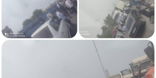 تجمع اعتراضی رانندگان وانت نیسان در گمرک بندر دیر