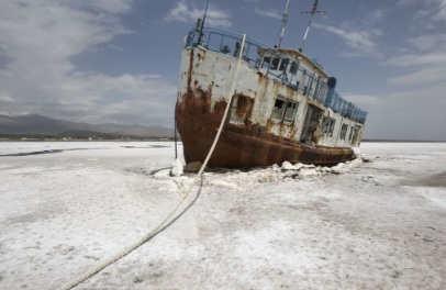 این عکس در چند روز گذشته از دریاچه ارومیه گرفته شده و در دریاچه بجای آب اکنون نمک دیده میشود