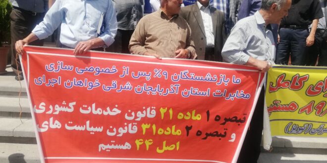 بازنشستگان مخابرات در روز گذشته نیز همراه با بازنشستگان تامین اجتماعی و کشوری وبهداشت و درمان تجمع داشتند. اعتراض بازنشستگان به فقر، فساد، بی تامینی، و بساط سرکوب و جنایت حکومت است و این خود را در شعارهای اعتراضی و بنرهای تجمعات آنها بازتاب میدهد. بازنشستگان مخابرات بعلاوه خواستار اجرایی شدن آیین نامهی استخدامی و رفاهی ۱۳۸۹ است که میتواند بهبودی در سطح دریافتی های آنها ایجاد کند. اجرای همسان سازی و افزایش حقوقها به بالای رقم سبد معیشت سی میلیونی، درمان رایگان، پایان دادن به اختلاسها و دزدیها و سرکوبگریهای حکومت مطالبات فوری و سراسری بازنشستگان است. بازنشستگان صدای اعتراض کل جامعه هستند و از اعتراضات و خواستهایشان وسیعا حمایت کنیم.