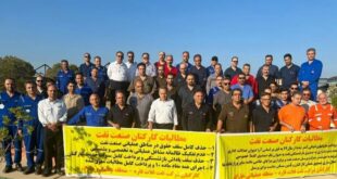 اعتراضات کارگران رسمی در نفت گسترش می یابد امروز یازدهم آبانماه کارگران عملیاتی جنوب در سکوی نصر تجمع داشتند و بنا بر گزارشات روز گذشته این کارگران در مناطق بهرگان، لاوان، پارس جنوبی در پالایشگاه های اول، دوم، چهارم، پنجم، هفتم، هشتم، نهم، دهم، یازدهم، دوازدهم و پالایشگاه فجر جم تجمع …